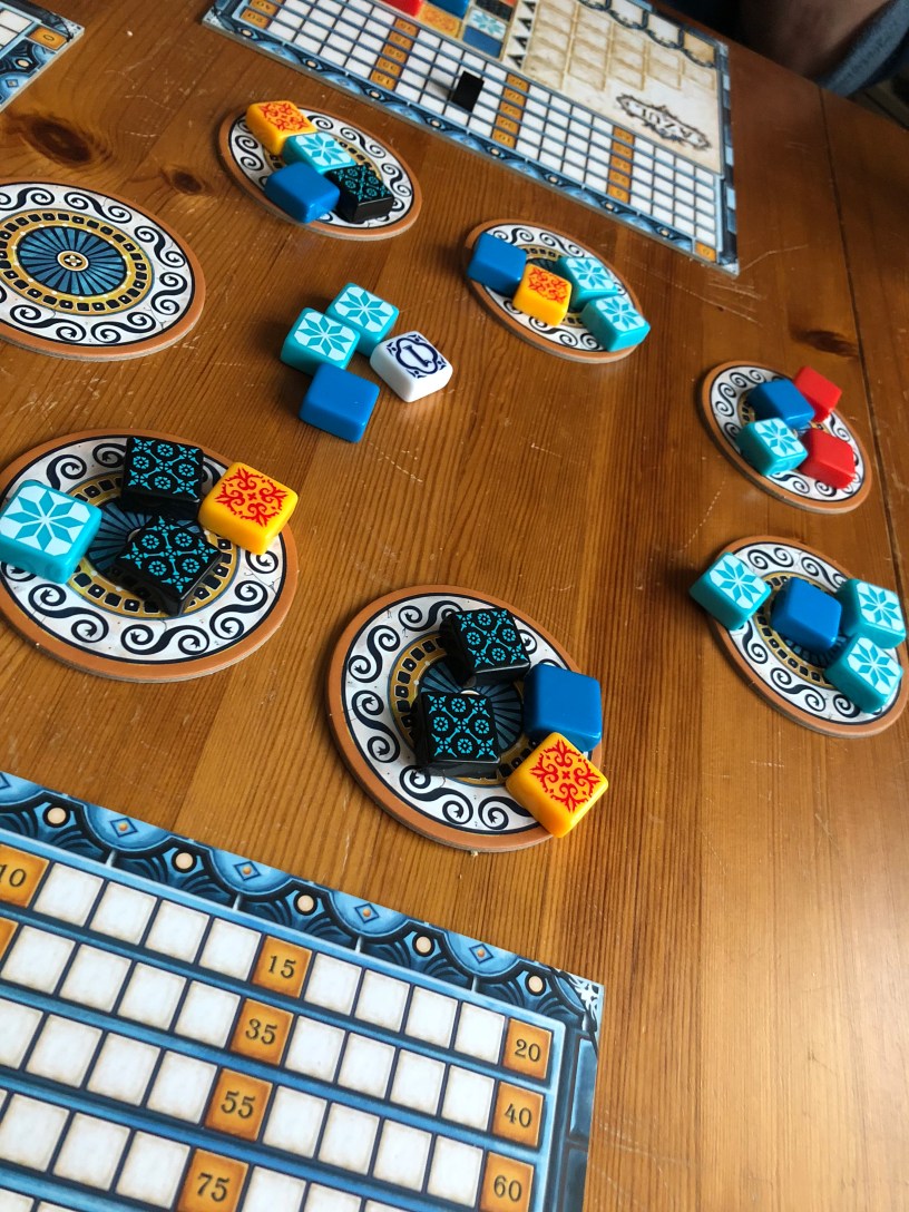 So, how could anyone not like this! Well, the reason I find it hard to describe how this game works and why it is so deviously clever is because it has almost nothing to do with it’s theme. The pretense that you are putting tiles on the wall seems more complicated to me than anything else here. I don’t find the need to complete rows or the need to pull tiles out of pots and to take ALL not just some at all in line with the theme. It’s just an abstract. However, given I love Santorini, The Duke and Onitama, I will not complain about adding this excellent abstract to the pile especially as it will go up to 4 players!